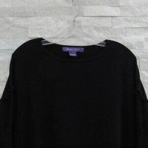 Ralph Lauren Collection Black Merino Wool Oversized Fringed Sweater L