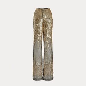 Ralph Lauren Collection Embellished Tulle Pants Metallic Sequin Sheer Gold 6 $5K