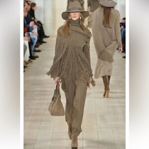 Ralph Lauren Collection Fall 2015 Runway Taupe Cashmere Fringed Scarf Shawl