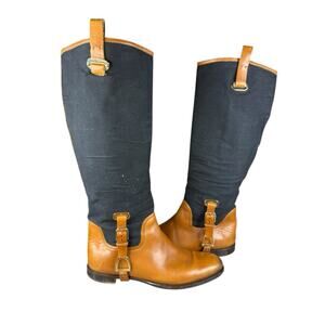 Ralph Lauren Collection Italy Brown Leather Fabric Riding Boots 8B Equestrian