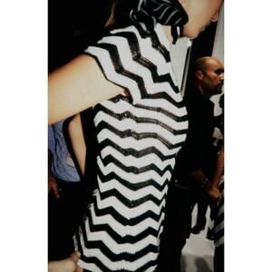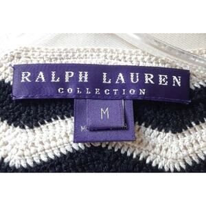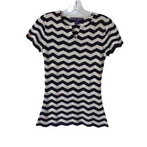Women’s vintage Ralph Lauren Purple Label Off White Beige and Black Chevron Stripe Hand Knit Silk Top.