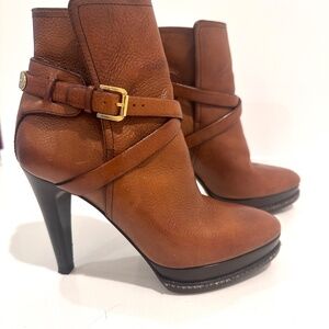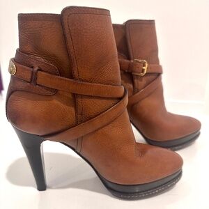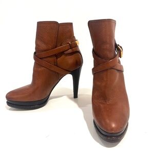 Ralph Lauren Collection Naima Leather Caramel Brown Ankle Boot Booties 37.5