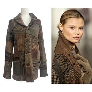 Ralph Lauren Collection Patchwork Cardigan Wool Sweater Runway 2009 Vintage L