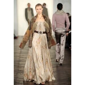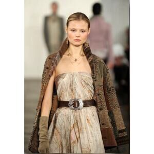 I also have the strapless floral gown in size 10 that’s pictured with the sweater in the runway photos if interested.