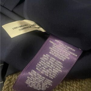 Ralph Lauren Collection Pinstripe Midi Day Dress Tie Neck Button Collar Navy 12