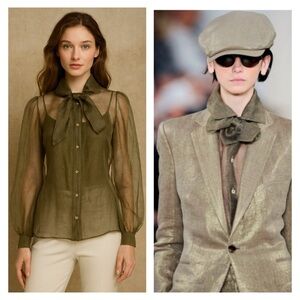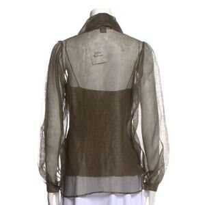 Ralph Lauren Collection Purple Label Button Up Blouse 2 Linen Silk Tie Neck