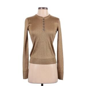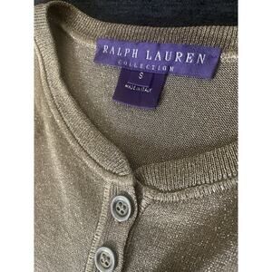 Ralph Lauren Collection Purple Label Metallic Sweater Top Button Up Shirt Gold S