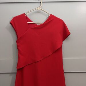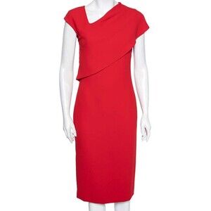 Ralph Lauren Collection Purple Label Sheath Dress Sz 6 Red Silk Asymmetric Drape V-Neck Party Chic Feminine Designer Quiet Luxury Minimalist Career Sophisticated Cocktail