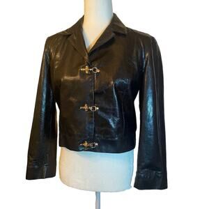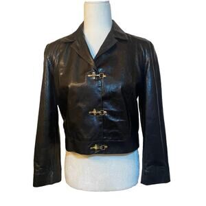 Women’s Ralph Lauren Collection black python leather snakeskin cropped jacket size 12 / Large L