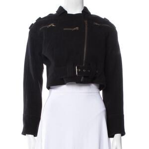 Timeless, chic women's Ralph Lauren Collection purple label runway black short cropped biker jacket
