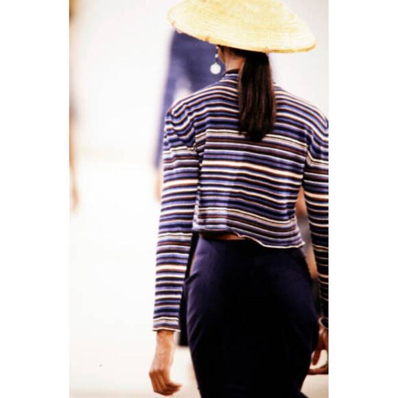 Ralph Lauren Collection Runway 1994 Long Sleeve Turtleneck Top Crop Blue Stripe