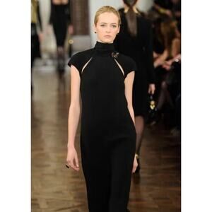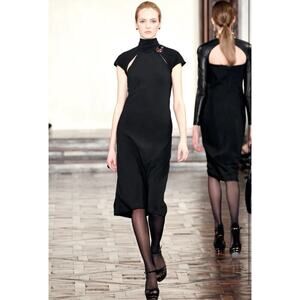 Ralph Lauren Collection Runway Black Midi Dress Cut Out Turtleneck Short Sleeve