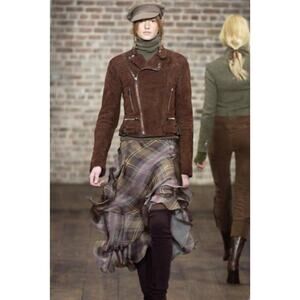 Designer dress skirt, Western fringe, equestrian, Suede leather tooled, boho Native American Navajo southwestern western, RRL double RL Polo Ralph Lauren runway, country, vintage concho patchwork. Shearling fur. Tags: Wedding guest, Runway Catwalk dress, haute couture, vintage designer. New York fashion week. Y2k 90s 2000s. formal gown, mother of the bride, black tie, event, gala, evening dress, fancy, red carpet, cocktail, special occasion, homecoming, party midi slip dress, NYE outfit, revolve mini dress, Shimmer, leather linen shearling fur coat, sparkle, silk, full length, embellished, high neck, beaded embroidered, flutter cap sleeve, Prada, zimmermann, Oscar de la renta, ulla Johnson, jovani. Mac duggal ball gown, sherri hill, blazer jacket, Western Navajo Native American, USA Italy, Equestrian Ralph Lauren collection purple label rrl