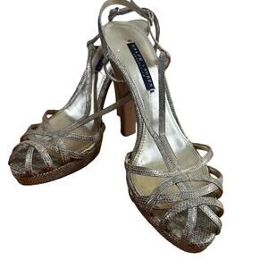 Ralph Lauren Collection Silver Snakeskin Platform Heels Size 9B