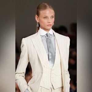 Ralph Lauren~ Collection Spring 12 Cream Pinstripe Wool Blend Crepe Casey Blazer