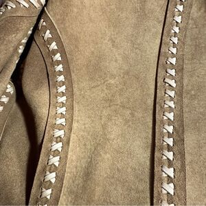 Deer suede leather jacket, assembled with hand whipstitching, and front lace closure.