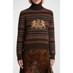 Ralph Lauren Collection Sweater Fair Isle Bullion Crest Cashmere Wool Turtleneck