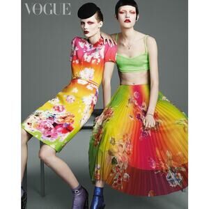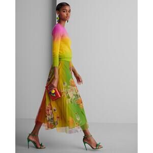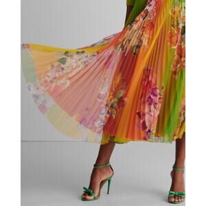 Ralph Lauren Collection Trivelas Floral Pleated Skirt rainbow midi Size 12
