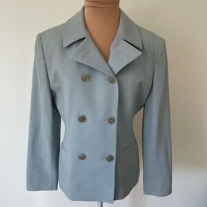 Ralph Lauren Collection Wool Baby Blue Double Breasted Faux Cuff Blazer Size 6