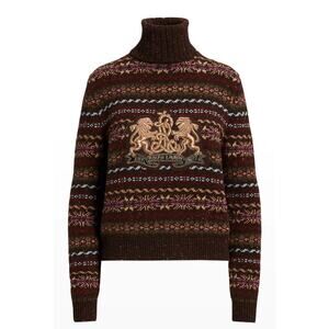 Ralph Lauren Collection Wool Sweater L Fair Isle Crest Cashmere Turtleneck $2490