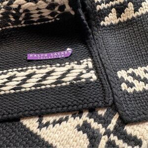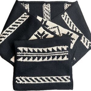 Ralph Lauren Collection~Back & Ivory Handknit Cashmere Fair Isle Geometric Scarf