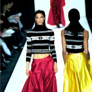 No signs of wear. Fabric tag not present. Runway pics as inspiration.