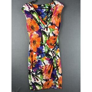 Ralph Lauren Colorful Floral Faux Wrap Ruched Stretch Sleeveless Dress Size 6