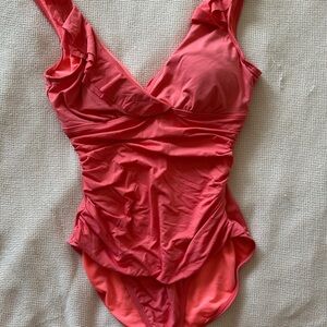 Ralph Lauren Coral Ruched V-Neck One Piece Swimsuit