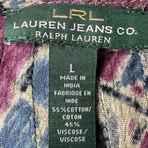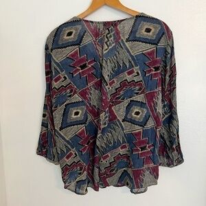 Ralph Lauren Cotton Multicolored Aztec Print Pleated Blouse Size L