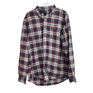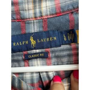 Ralph Lauren Cotton Oxford Long Sleeve Shirt Classic Fit Blue Red Plaid Large
