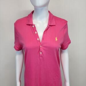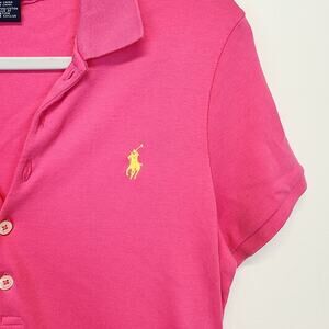 Vintage Y2K Ralph Lauren Cotton Polo Dress Size M Pink Collared Yellow Pony Preppy
