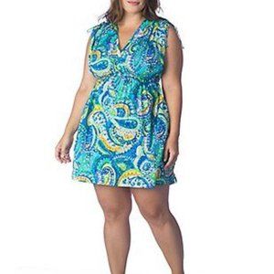 Ralph Lauren Cover up Dress Plus Size 1X Carnivale Paisley Farrah Blue