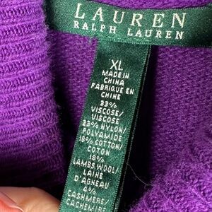 Ralph Lauren Cowl Neck Sweater Sz XL 14 16 Lambs Wool Cashmere Blend Purple