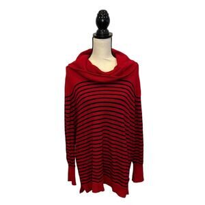 Ralph Lauren Cowl Neck Wool Blend Red Striped Long Sleeve Knit Sweater SZ 2XL