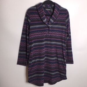 Ralph Lauren long sleeve medium to lightweight fleece nightgown with pockets. Gorgeous Aztec southwest print. In excellent preloved condition. Size Medium. Measurements in photos.