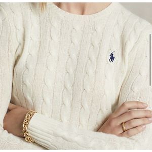 Elegant cable knit design. Soft and comfortable. Perfect for layering.