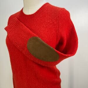 Ralph Lauren Crewneck Wool Pullover Sweater Elbow Patch Red Preppy Heritage Knit