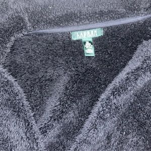 This stunning black on black faux fur Ralph Lauren cropped shawl/coat is the perfect addition to your wardrobe. The shawl collar and open front give it an elegant and effortless look, while the pockets make it practical as well. It's made of 100% polyester outer shell material and features 100% polyester faux fur insulation material to keep you warm during winter, fall, and spring.