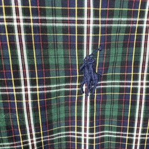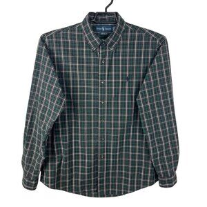 Ralph Lauren Custom Fit Men's L Button Down Shirt LS Multi Plaid Green EUC