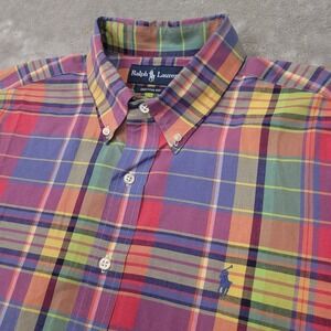 Ralph Lauren Custom Fit Multicolor Madras Plaid Short Sleeve Button Up Shirt XL
