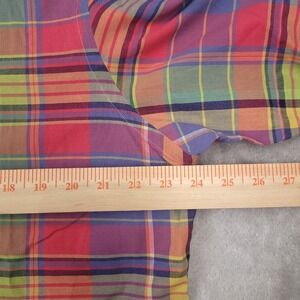 The Ralph Lauren Custom Fit Multicolor Madras Plaid Short Sleeve Button Up Shirt in XL is a classic and colorful piece perfect for travel or casual occasions. Made from woven cotton fabric, this shirt features a collared neckline, button-down style, and is machine washable for easy care. The multicolor plaid pattern adds a touch of preppy style, while the embroidered logo on the chest adds a sophisticated touch. With a custom fit and regular size type, this shirt is both stylish and comfortable for all seasons.