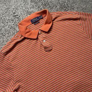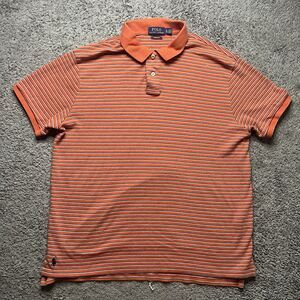 Ralph Lauren Custom Fit Orange Striped Mens Polo Shirt Size XL