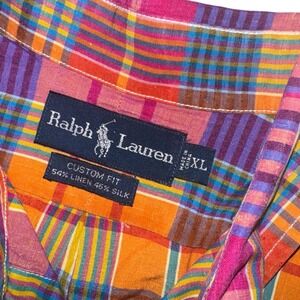 Keywords: Ralph Lauren, Custom Fit, Plaid Shirt, Mens, XL, Orange, Pink, Silk, Linen, Button Down Shirt, Casual Shirt, Long Sleeve, Colorful Shirt, Luxury Shirt, Designer Shirt