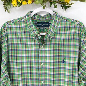 Ralph Lauren Custom Fit Plaid Shirt XL Pink Green Blue Pony Logo Classic Preppy