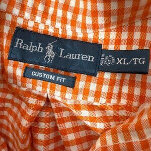 Ralph Lauren Custom Fit Sz XL Long Sleeve Shirt Orange White Check