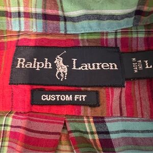 Ralph Lauren Custom Fit VTG Shirt SS 100% Cotton Madras Plaid Men's Size Large