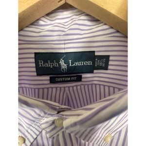 Ralph Lauren Custom Fit White with Purple Stripes Sz 16.5 - 32/33 - 100% Cotton