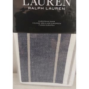 Ralph Lauren DOMINIQUE YARN DYE Blue White European Euro Pillow Sham 26"x26".