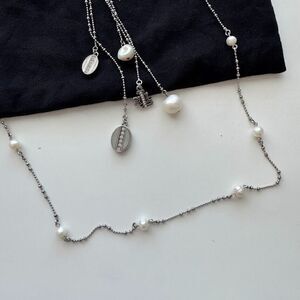 Ralph Lauren Dainty Necklace Fringe Silver Pearl Wedding Bride Backdrop Drape