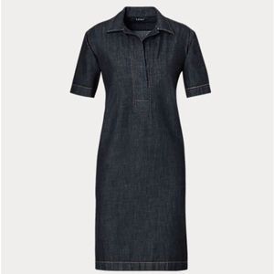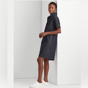 Chic denim dress with short sleeves. Features a stylish collar. Perfect for casual outings.